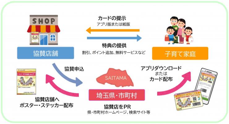 埼玉県では、18歳に達して最初の3月31日を迎えるまでのお子さんとその保護者や妊娠中の方がいる家庭を対象に、県内の店舗等で商品購入時等に割引などの優待(特典)が受けられる、子育て家庭優待制度「パパ・ママ応援ショップ」事業を実施しています。